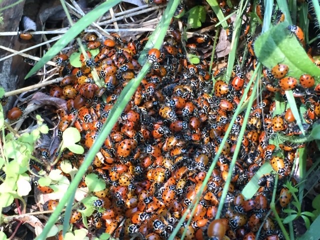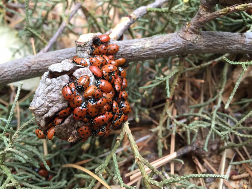 Better known as ladybugs, lady beetles have a special place in our hearts at VMF's Volcan Mountain Nature Center. Specifically, convergent lady beetles will gather together in 'summits' -- mass gatherings -- around the Volcan Mountains and surrounding areas. These 'summits' of convergent lady beetles happen elsewhere, too. Learn more with EXPLORING THE MYSTERY OF SUMMIT LADYBUGS Photo: Janice Smith