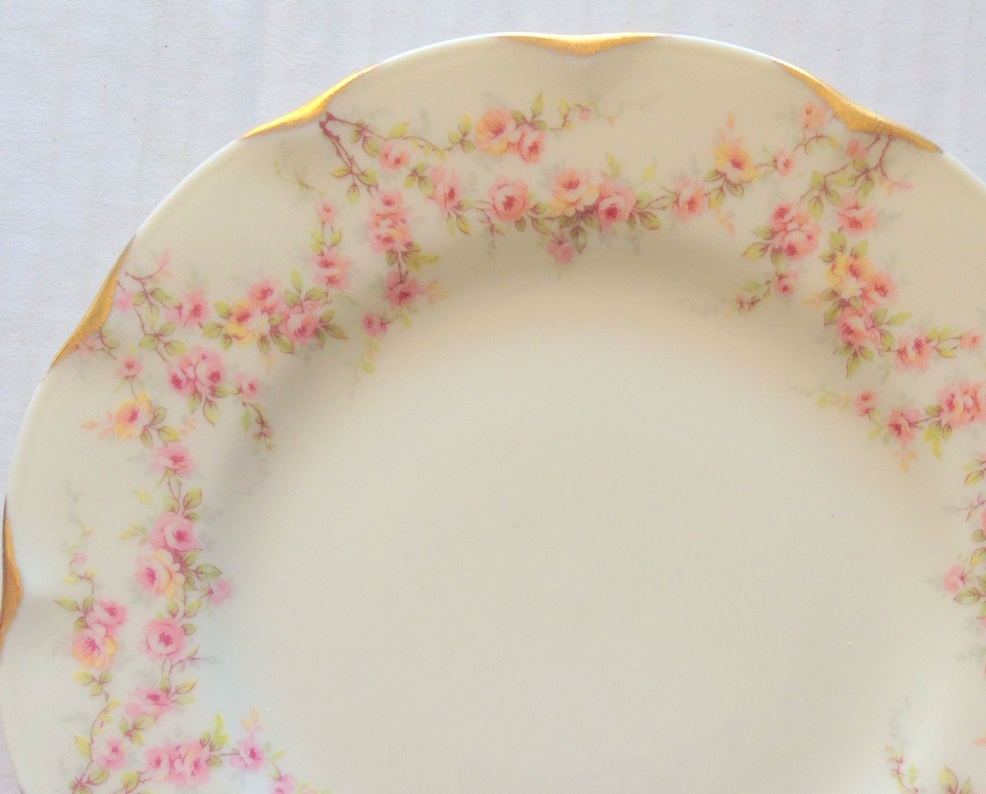 | Description: | Theodore Haviland China--service for eight of the delicate Varenne pattern in excellent condition, donated by Pat Straube, features garlands of pink roses with 22K gold rim trim and comes with many serving pieces. |