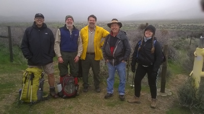 With permission from land owners and managers in hand, we five intrepid hikers set out in cloudy, blustery conditions from the San Felipe Valley near Banner Grade with the plan to summit Volcan's southern peak overlooking Julian, then head north along ranch and abandoned fire roads to near the high point of the range at Pechacho peak, finally to drop back down to S2 just north of Cerra de la Hechicera. Our overnight campsite was in the tall trees below the Sky Island Trail in the heart of the 400 acre VMF's Volcan Mountain Nature Center. It was a strenuous hike, covering nearly 16 miles and 6,000 feet of elevation gain.