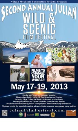 Don't miss the opening night festivities of the Volcan Mountain Foundation's 2nd Annual Julian Wild and Scenic Film Festival on Friday, May 17th starting at 6:30pm for an opportunity to meet some of the extraordinary filmmakers!