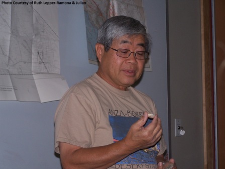 The geology of the 15-mile long Volcan Mountain range is complex and fascinating—especially if you’re talking to Fred Jee! Fred is a geologist, retired supervising ranger from Anza-Borrego Desert State Park, and 37-year resident of nearby Borrego Springs. He loves to share his vast knowledge of local geology in an entertaining and humorous fashion.