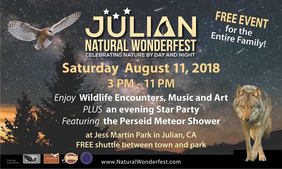 Saturday, August 11th, from 3:00 pm - 11:00 pm, come experience the Julian Natural Wonderfest at Jess Martin Park (2955 Highway 79, Julian, CA 92036)!