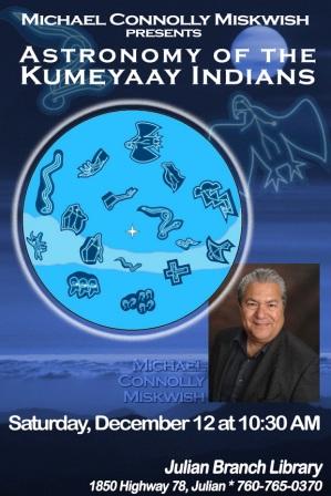 This Saturday, December 12th, at 10:30am, please join the Volcan Mountain Foundation and the Friends of the Julian Library as we welcome Michael Connolly Miskwish to speak on the Astronomy of the Kumeyaay Native Americans.