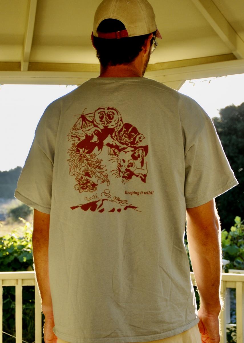 Show your love for Volcan Mountain, while KEEPING IT WILD with the Volcan Iconic Species short sleeve T-shirt! It's a classic unisex T-shirt cut, in an earthy sage color, with the back artwork and Volcan Mountain Foundation logo on front, in brown. Iconic Species artwork by Aaron Melzow. All proceeds support the Volcan Mountain Foundation!